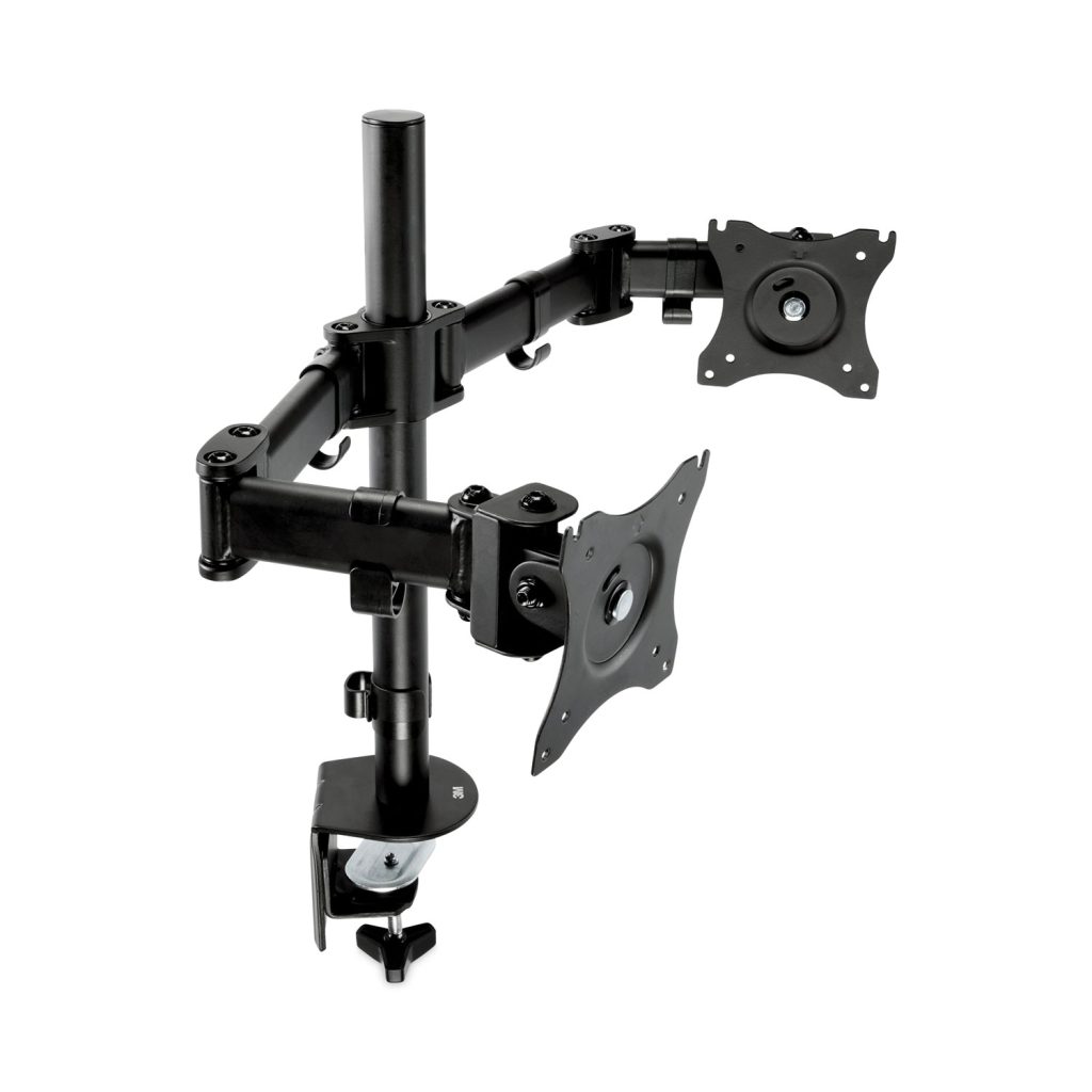 Free up valuable desk space and bring your monitor to a comfortable viewing height and distance while sitting or standing. Sturdy steel construction holds two monitors up to 28.5″ width and 20 lb each. Easily clamp mounts to surfaces up to 3.25″ thick, no tools needed (grommet mount also available). Cord management clips on the arms and pole. Fully adjustable. OEM/Compatible: Compatible; Workstation Type: Mobile Workstation; Traditional Desk/Table; Width (Min): 28.6″; Width (Max): 33″.