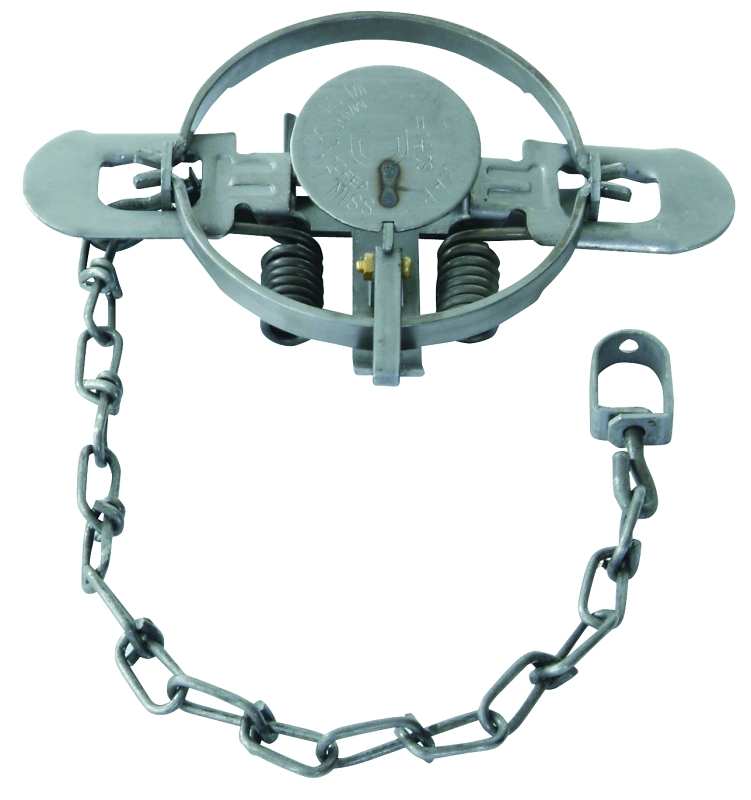 Coil spring traps are foot-hold restraining devices used to catch and hold wild animals. This style of trap has been in use since the early part of the 20th century and is widely accepted as a cost effective and efficient tool for managing wildlife populations. Coil spring traps are manufactured of steel components and powered by a set of compact coil springs.