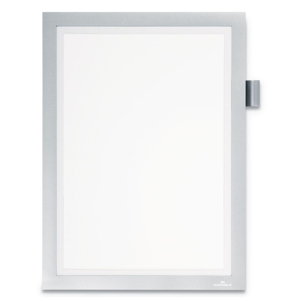 The self-adhesive infoframe with pen holder is the ideal solution for direct writing on documents and notices. Quick insertion and exchange of documents via a fold-back magnetic frame. Easy to attach to solid and smooth surfaces. Can be removed from glass. Direct writing onto the inserts within the frame. Universal pen holder. Frame looks identical from both sides. For use in portrait and landscape formats. Can be to create cleaning charts in public toilets, registration for events or collection and documentation of information, working procedures and services such as maintenance or safety checks. Frame Color: Silver; Size: 8.5 x 11; Insert Size: 8.5 x 11; Material(s): PVC.