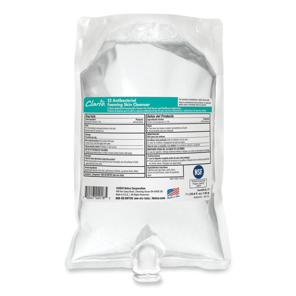 Certified for use in all regulated food processing and food service environments. Effective against common organisms caused by spoilage and foodborne illnesses. Leaves hands feeling clean without stickiness, dryness, or residue. Soap Type: Foam; Application: Hand; Capacity (Volume): 1,000 mL; Scent: Fragrance-Free.