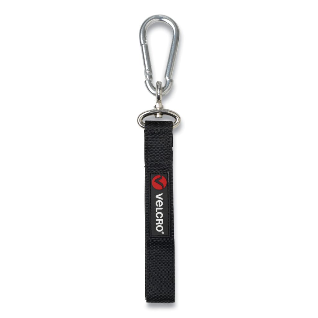 Keeps power cords, hoses and other trip hazards off the floor.Heavy-duty storage strap designed to wrap securely around larger items or bundle cords and hoses in order hang for storage and maximum organization.Suitable for indoor and outdoor use this reusable, adjustable strap with Zinc hook is weather resistant. Made from tough, durable and strong VELCRO Brand gripping hook and loop nylon material combined with the highest quality grade carabineer hook. Space saving. Medium. Hook and Loop Fastener Type: Strap; Suggested Use: Indoor/Outdoor Heavy-Duty; Color(s): Black/Silver; Weight Capacity (text): Up to 200 lbs.
