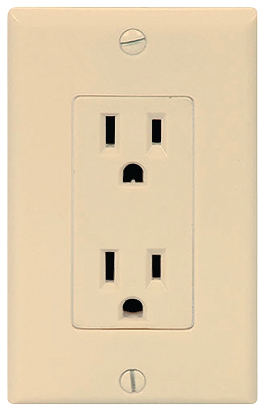 With No. 1107 wallplate. UL listed. 15 A, 125 V, grounded. Carded.