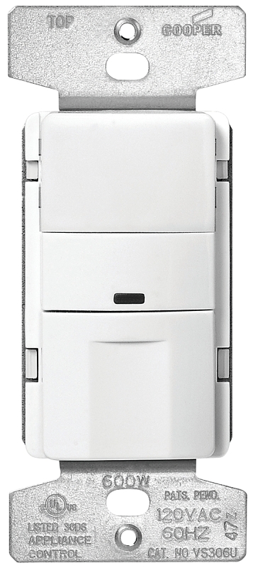 Eaton Wiring Devices OS306U-W-K Motion Sensor Switch, 120 V, 1-Pole, Motion Sensor, 180 deg Sensing,