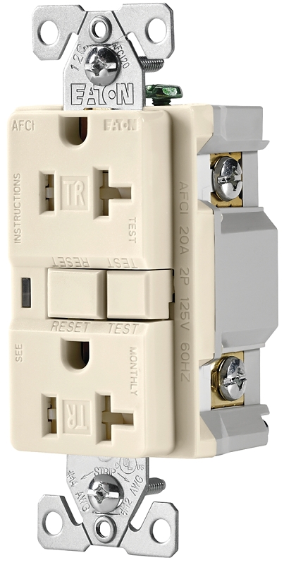 Eaton Wiring Devices TRAFCI20LA AFCI Receptacle, 2 -Pole, 20 A, 125 V, Back, Side Wiring, NEMA: 5-20