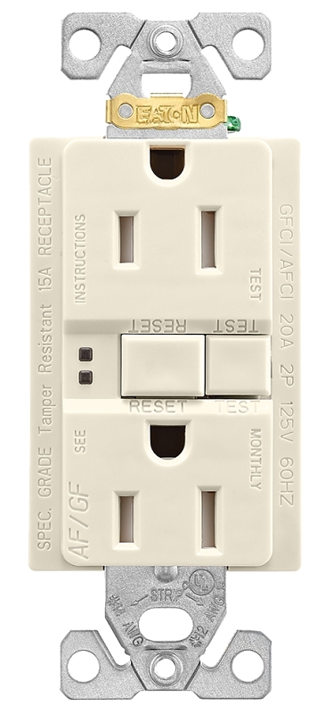 Eaton Wiring Devices TRAFGF15LA-K-L Duplex Receptacle Wallplate, 2 -Pole, 15 A, 125 V, Back, Side Wi