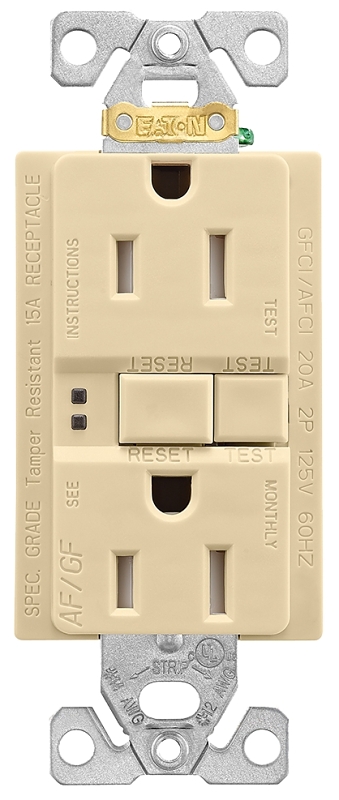 Eaton Wiring Devices TRAFGF15V-K-L Duplex Receptacle Wallplate, 2 -Pole, 15 A, 125 V, Back, Side Wir