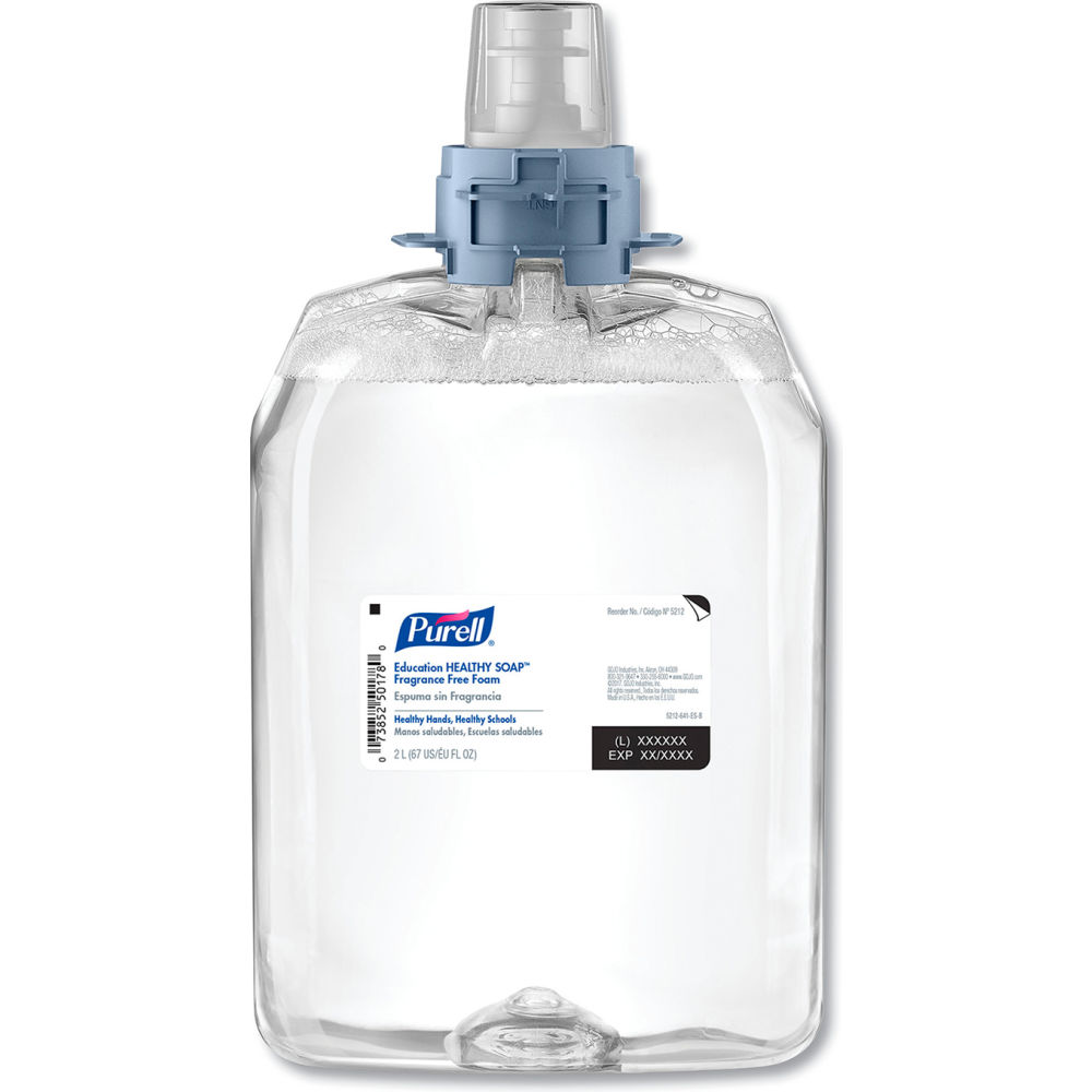 High-capacity refill and kid-friendly foam soap makes fighting germs and maintaining clean restrooms easier. Dispenses just the right amount of soap for small hands, reducing waste and cost. Extra-large, 2-liter refill holds up to 5,000 uses, reducing change-outs. PURELL foam rinses cleaner than liquid soap without leaving drips or messes in the sink. This good-for-you foam soap is tough on germs, yet gentle on skin. Free of fragrance, dyes and harsh chemicals. Soap Type: Foam; Application: Hand; Capacity (Volume): 2,000 mL; Scent: Unscented.
