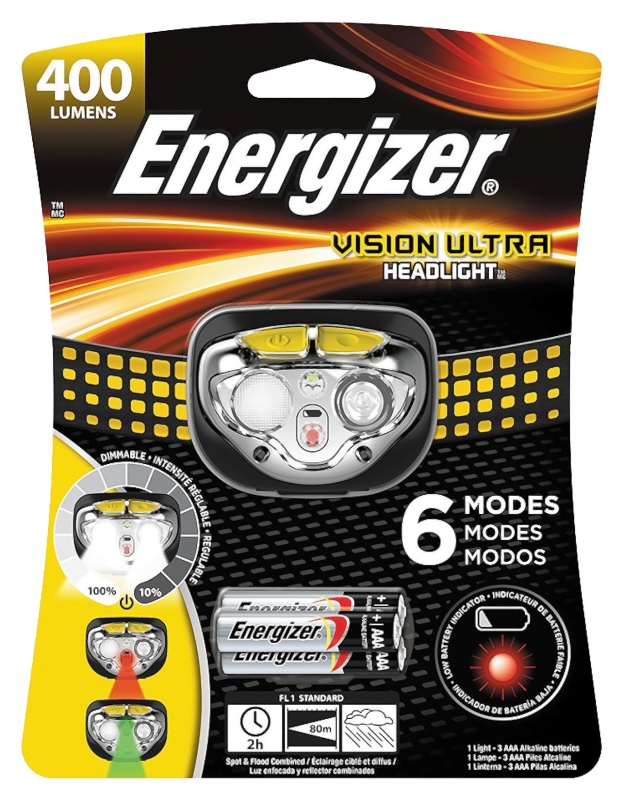 Energizer HDE32E Headlight, AAA Battery, LED Lamp, 400 Lumens Lumens, 80 m Beam Distance, 2 hr Run T