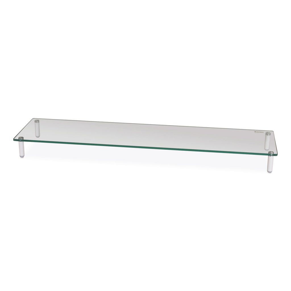 Elegant minimalist design. Extra-wide monitor riser holds two monitors. Ample space to place accessories and store keyboard underneath. Strong tempered glass platform. Sleek designer-look white legs with non-skid feet. OEM/Compatible: Compatible; Workstation Type: Desk-Mounted Sit/Stand Workstation; Floating Sit/Stand Workstation; Free-Standing Sit/Stand Workstation; Mobile Workstation; Reception/Transaction Station; Traditional Desk/Table; Width (Max): 39.4″; Depth (Max): 10.2″.