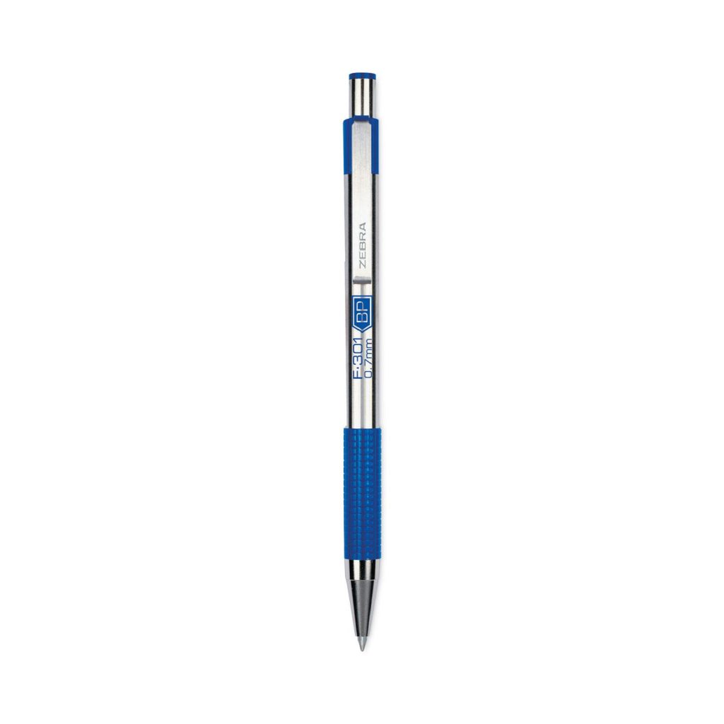 F-301 Ballpoint Pen, Retractable, Fine 0.7 mm, Blue Ink, Stainless Steel/Blue Barrel, 2/Pack