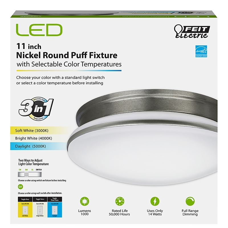 Feit Electric PF11/RND/4WY/NK Ceiling Fixture, 120 V, 14 W, LED Lamp, 1000 Lumens, Aluminum Fixture