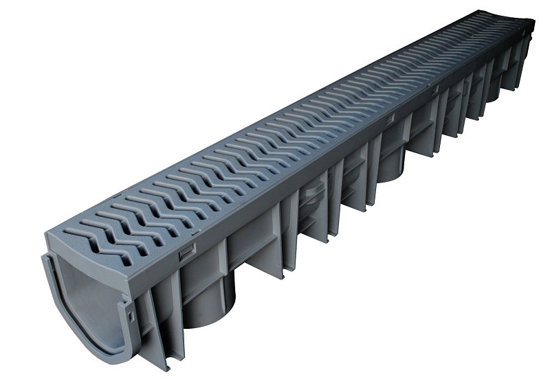 FERNCO Storm Drain Plus Channel – For Driveways, Patios, Swimming Pools, Sports Courts, Gardens and Walkways. Class B, 39-1/2 in Length, 61 – 175 Psi Wheel Load, Polypropylene Co-Polymer, Gray, Standards: ADA Compliant.