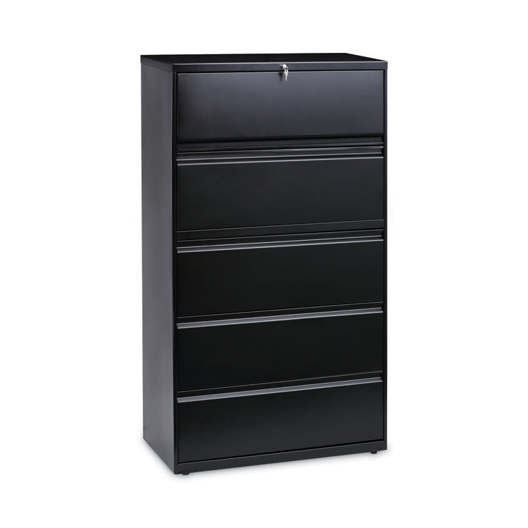 Five-Drawer Lateral File Cabinet, 36w x 18d x 64.25h, Black