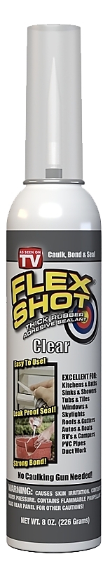 Flex Shot is the revolutionary super thick, rubber sealant to caulk, bond and seal virtually everything. Because it’s so thick, you can fill huge cracks and holes and stop tough leaks instantly. Flex Shot comes out nice and thick and will cling to any surface. Then it turns into a stretchy rubber seal that’s virtually indestructible. The free extension tube makes even hard-to-reach repairs perfect every time.