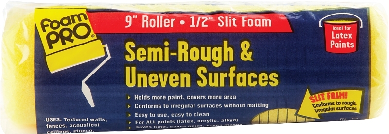 FOAMPRO 22 Paint Roller Cover, 1/2 in Thick Nap, 9 in L, Foam Cover
