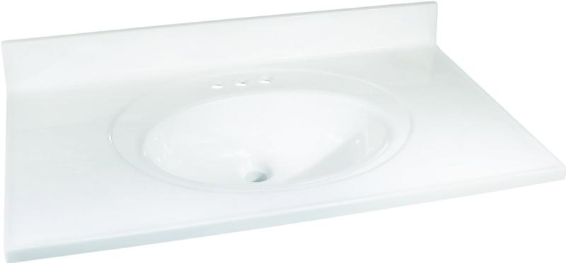Durable and seamless, the one-piece cultured marble vanity tops are the ideal addition to any vanity. Featuring an integrated oval bowl and 4 in backsplash, the cultured marble tops are easy to install and ready to add a stylish touch to your bathroom.