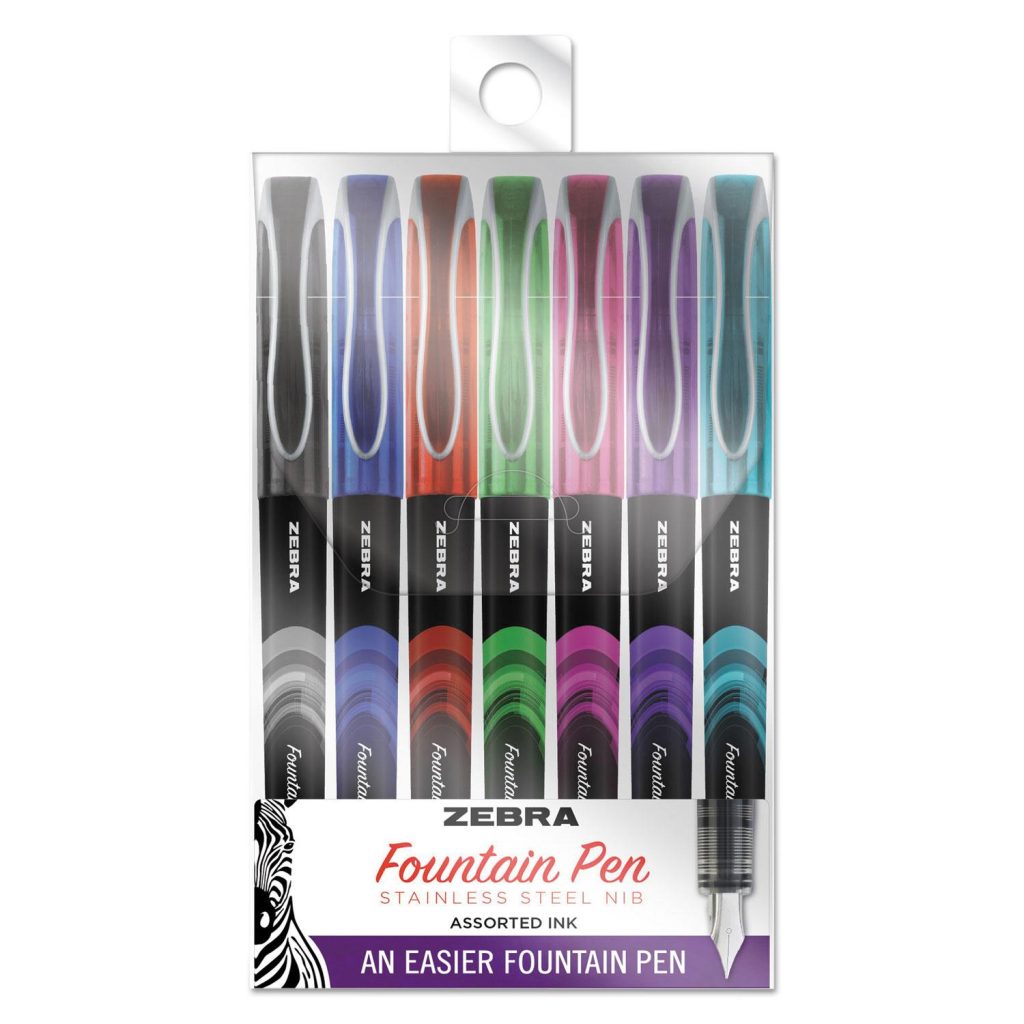 Fountain Pen, Fine 0.6mm, Assorted Ink/Barrel, 7/Set