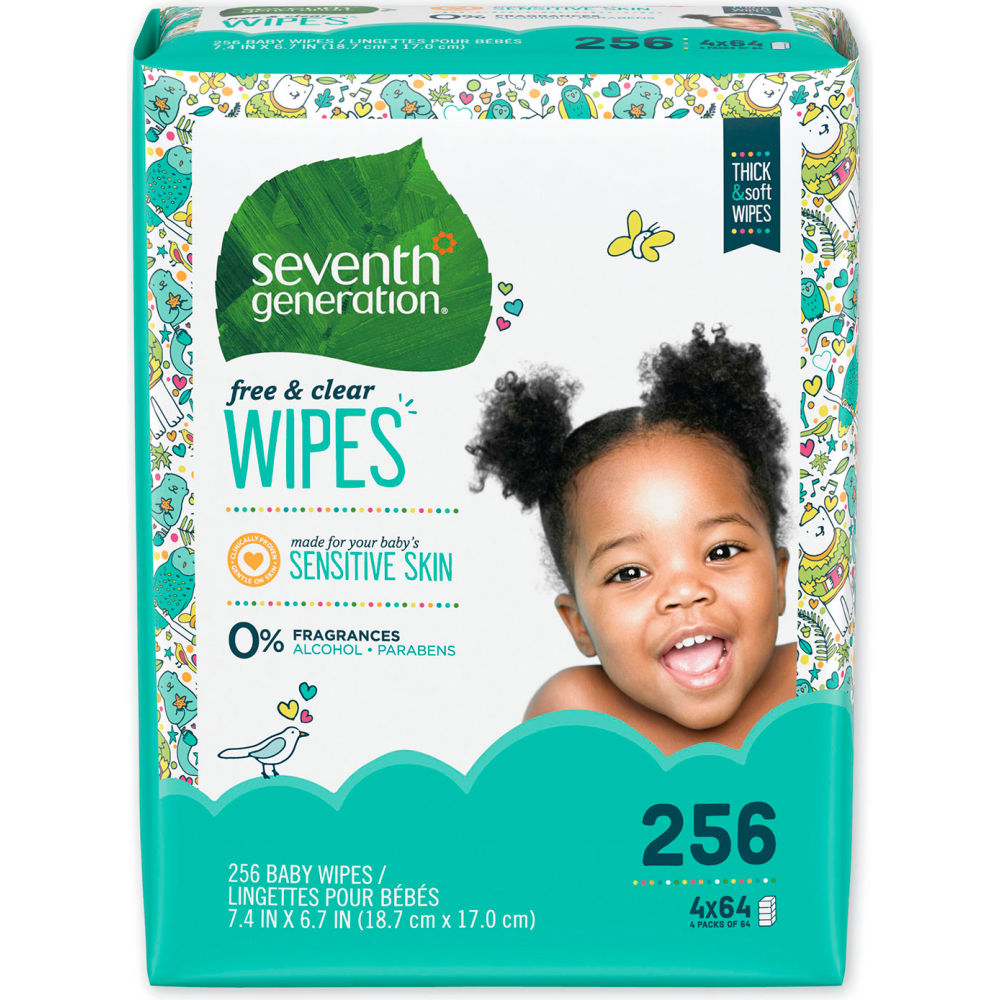 Free and Clear Baby Wipes, Refill, Unscented, White, 256/Pack, 3 Packs/Carton