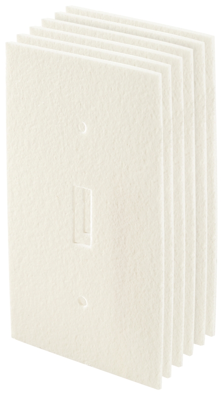Fire retardant plastic foam reduces drafts and heat loss. Enough for six standard electrical switches. 2-1/2 in W x 4 in H.