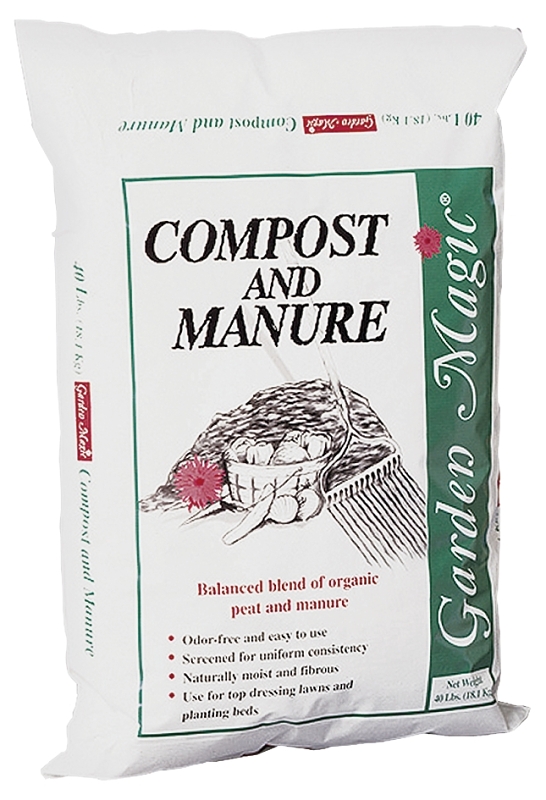 Garden Magic 5240 Compost and Manure, Solid, Dark Brown/Light Brown, Faint Soil, 40 lb Package, Bag