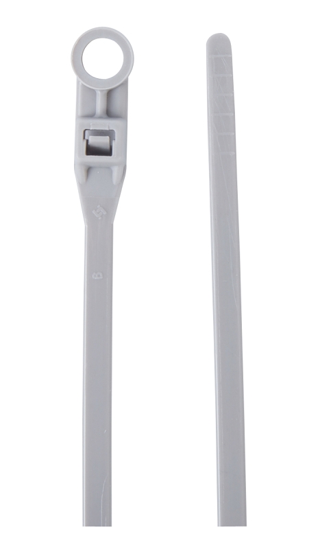 Fasten bundles, hoses, ducts to panels or other surfaces. Use number 10 screw eye to position and secure bundled harnesses. Flexible nylon material allows cable ties to remain serviceable through temperature ranges of -40 to 185 deg F. 50 lb tensile strength. Black ties are UV protected. Recognized under component program of UL E125869. Meets flammability classification UL 94 V-2.