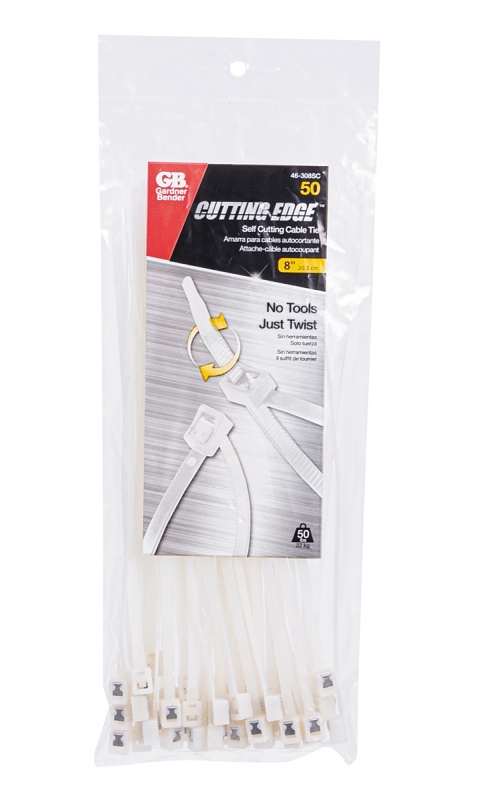 Save time and frustration using the latest innovation from Gardner Bender; the self-cutting cable tie. Easy to use; simply lock-and-twist to finish the job, with no need for an additional cutting tool! Unlike other “twist” ties our patented design doesn’t require a reduction in the strength and durability of the cable tie material or multiple rotations to achieve a break in the tie. Instead, a small cutting blade designed into the head of each tie ensures a tight lock and quick, clean cut, improving the appearance of the end result and virtually eliminating residual jagged edges which can bite into bare skin.