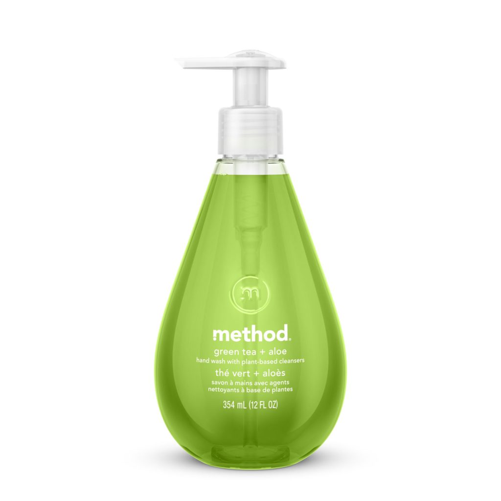 This gel hand wash soap is made with plant based cleansers that leave hands feeling clean and soft and sublimely scented. Formula is made without parabens or phthalates. Hand washes are available in a variety of nature inspired fragrances that come in our iconic tear drop designed bottles. Bottles (minus pumps) made with recycled plastic (PCR). Cruelty free formula. Tested by people, not on animals. Soap Type: Gel; Application: Hand; Capacity (Volume): 12 oz; Scent: Green Tea & Aloe.