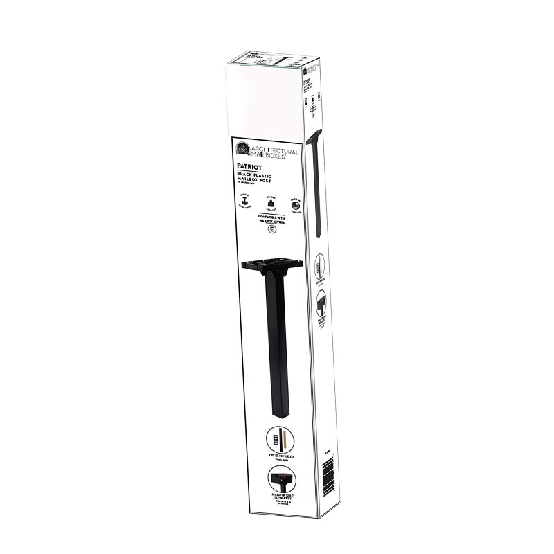 Like a loyal sentry, the Patriot mailbox post will provide many years of faithful and worry-free service. Constructed from a durable polymeric plastic, this elegant black post is easy to install and requires no digging or anchoring in concrete. A ground mount and mailbox bracket are included so that installation is fast and easy. In addition, an ultraviolet inhibitor helps protect the rustproof post so it will offer outstanding performance for a long time. The Patriot also features a five-year limited warranty.