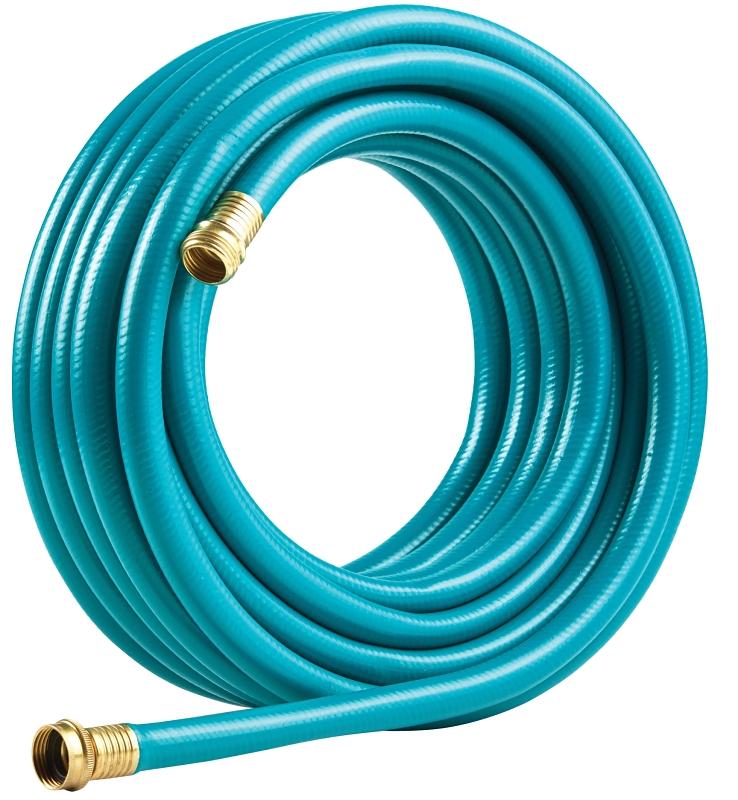 4-ply reinforced vinyl construction. Good burst strength and withstands nozzle shut-off. Lightweight and flexible for easy handling. Full-Flo brass couplings for unrestricted water flow. Kink resistant, weather and abrasion resistant.