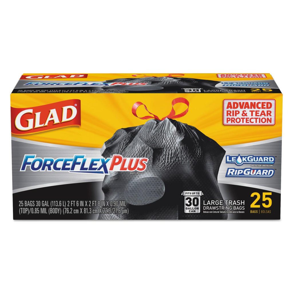 GLAD 70359 Trash Bag, 30 gal Capacity, Black