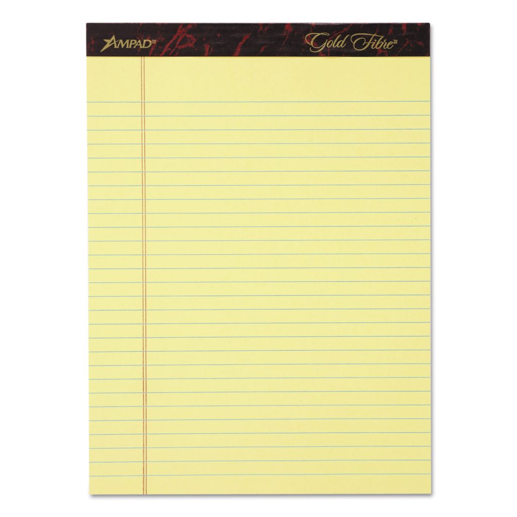 Gold Fibre Writing Pads, Wide/Legal Rule, 8.5 x 11.75, Canary, 50 Sheets, 4/Pack