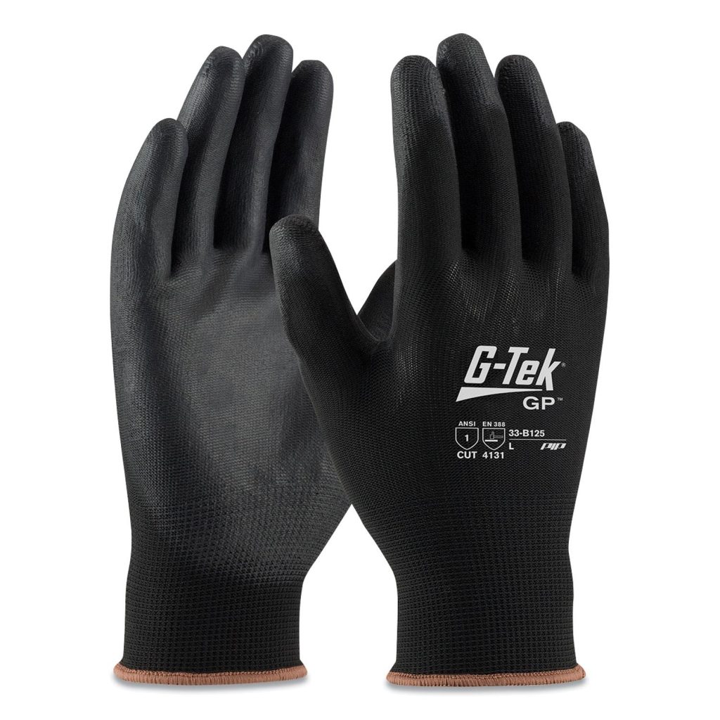 Keep yourself and your crew properly equipped. G-Tek GP gloves are ideal for electronic and computer assembly, quality-control and similar applications. Cut-, puncture-, abrasion- and tear-resistant nylon shell features a seamless, breathable design for increased comfort and improved finger dexterity. Polyurethane-coated fingertips and palm allow you to get a better grip on wet and/or oily objects. Knit wrist helps prevent dirt and debris from entering your gloves. Machine washable. Style: Cut-Resistant; Wrist Style: Knit Cuff; Material(s): Polyurethane-Coated Nylon; Thumb Style: Wing.