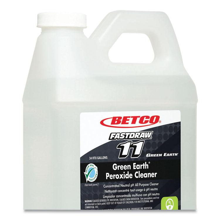 Betco Green Earth peroxide cleaner is for daily use on floors, showers, glass, and other hard surfaces. This one product can clean your entire facility. Removes mold stains, mineral deposits and soap scum on tile, grout, bathtub surfaces, and fixtures. Application: All-Purpose; Applicable Material: Floor; Fixtures; Glass; Grout; Shower; Tile; Tubs; Chemical Compound: Methoxyisopropanolsolvent; Surfactant; Hydrogen Peroxide; Dirt Types: Mold; Scum.