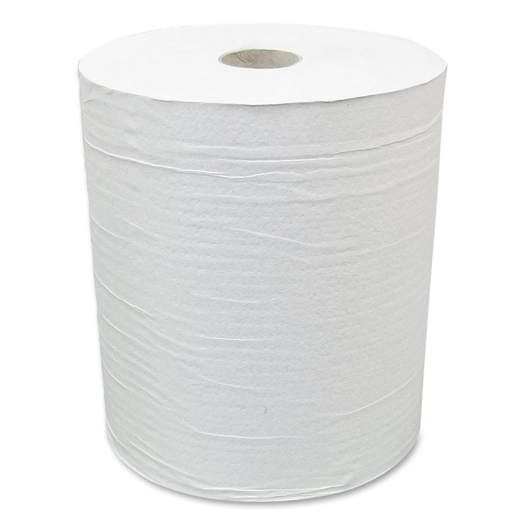 Hardwound Paper Towel Roll, Eco Green Paper, 1-Ply, 7.88″ x 800 ft, White, 6/Carton