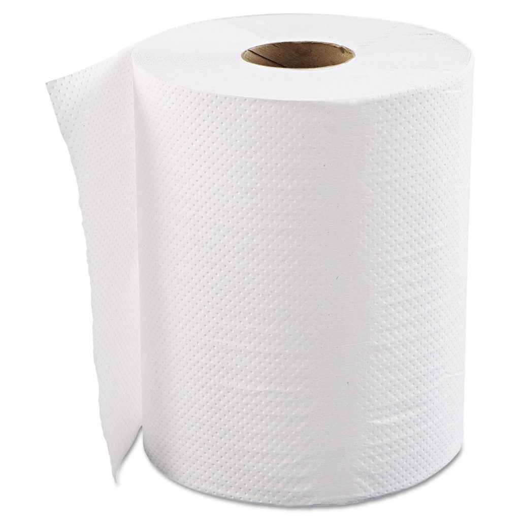 Hardwound Roll Towels, 1-Ply, White, 8″ x 600 ft, 12 Rolls/Carton