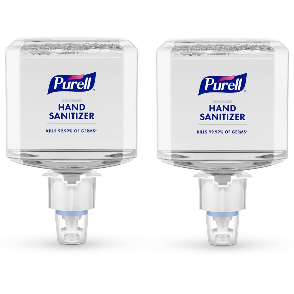Advanced foam hand sanitizer formulation designed for healthcare environments. Kills 99.99% of most common germs that may cause illness. Enhanced with a nourishing blend of four skin conditioners to maintain skin health. Hypoallergenic. Compatible with nitrile, vinyl and latex gloves. Dye-free. AT-A-GLANCE refills make it obvious when refills need to be changed. For PURELL ES4 Dispensers. Hand Sanitizers Type: Foam; Color(s): Clear; For Use With: ES4 Sanitizer Dispensers; Capacity (Volume): 1200 mL.