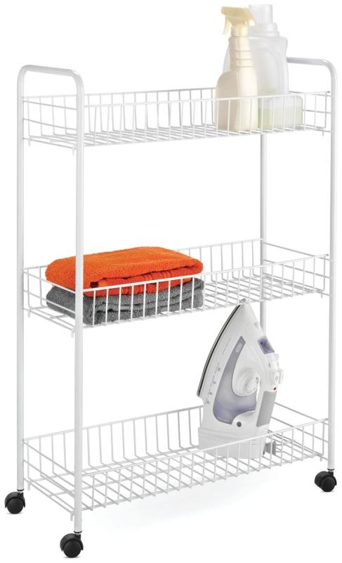 Honey-Can-Do Storage Cart, Type: Rolling, 23 in OAL, 8 in OAW, 31 in OAH, Steel, 3 -Shelf, 4 -Caster, White