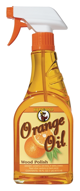 Use Howard Orange oil wood polish to dust, polish and condition all wood surfaces including kitchen cabinets, tables, chairs, desks, paneling and antiques. Orange oil will help keep your wood from drying out while restoring depth of grain and natural beauty to the wood. It’s easy-to-use and excellent for polishing, conditioning and nourishing all wood surfaces. Howard Orange oil wood polish has been using the polishing power of real orange oil to gently clean and polish wood finishes for over 35 years. Orange essence oils are derived from the rind of the fruit and have excellent cleaning and polishing properties. These special oils, blended with a highly refined mineral oil, enhance the depth and bring out the natural beauty of the wood grain. Howard Orange oil can be used on all wood surfaces including antiques, furniture and kitchen cabinets without drying the wood finish like many other wood cleaners. Does not contain silicone or linseed oil.