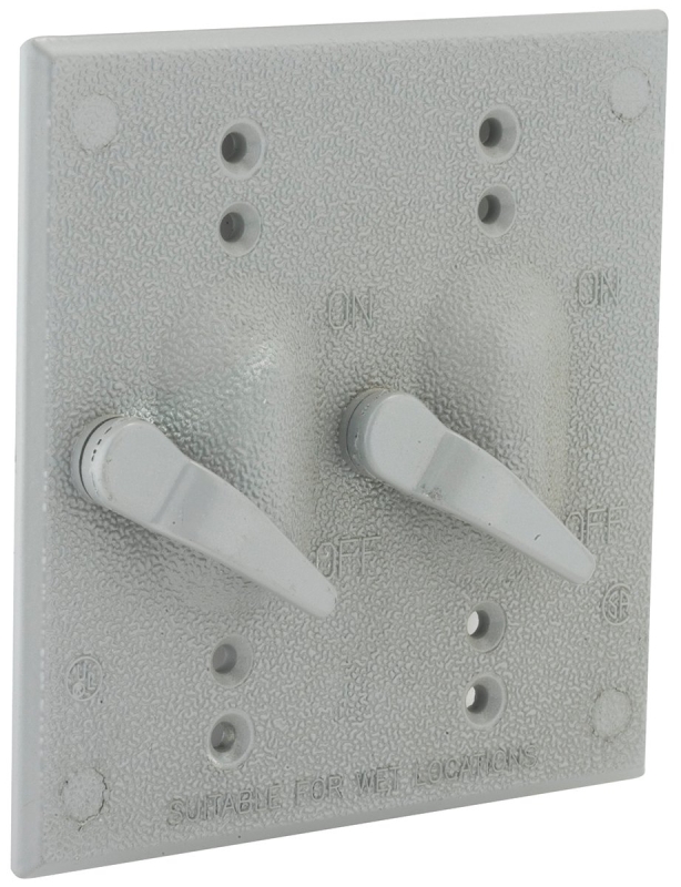 HUBBELL 5124-0 Two-Toggle Cover, 4-17/32 in L, 4-17/32 in W, Aluminum, Gray, Powder-Coated