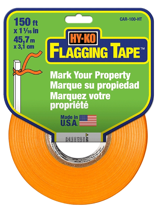 HY-KO CAR-100-HT Flagging Tape, 150 ft L, 1-1/16 in W, Orange, Plastic