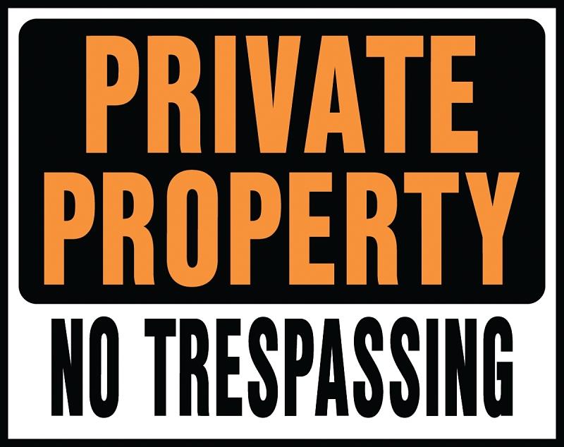 Top visibility, heavy-gauge, durable, weatherproof. Fluorescent letters on black background. Ideal for homeowners, apartments, industrial, shopping centers and offices. Sign states “PRIVATE PROPERTY NO TRESPASSING”.