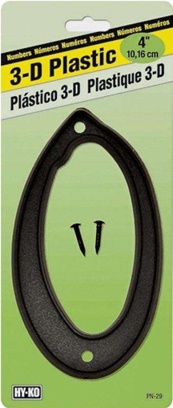 HY-KO PN-29/0 House Number, Character: 0, 4 in H Character, Black Character, Plastic