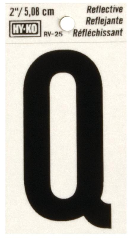 HY-KO RV-25/Q Reflective Letter, Character: Q, 2 in H Character, Black Character, Silver Background,
