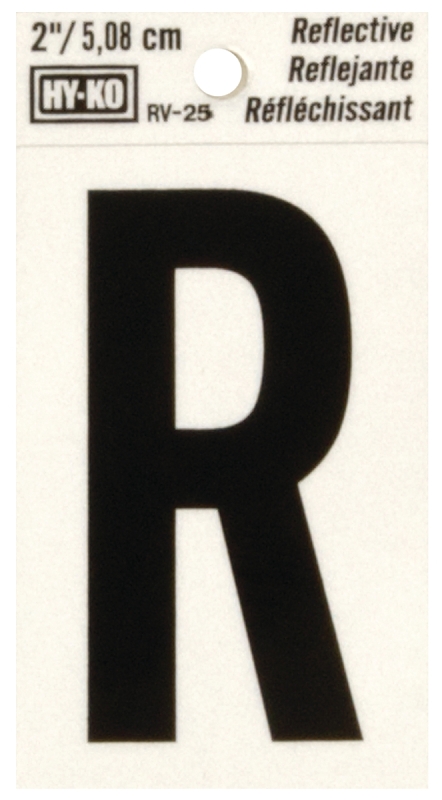 HY-KO RV-25/R Reflective Letter, Character: R, 2 in H Character, Black Character, Silver Background,