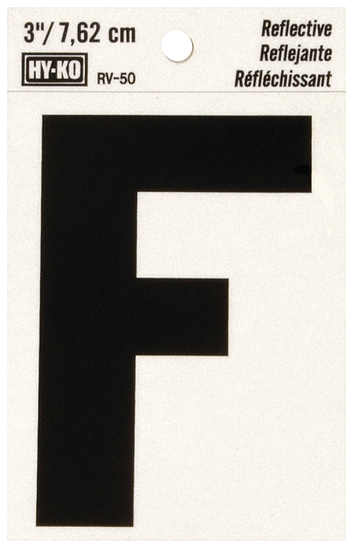 HY-KO RV-50/F Reflective Letter, Character: F, 3 in H Character, Black Character, Silver Background,