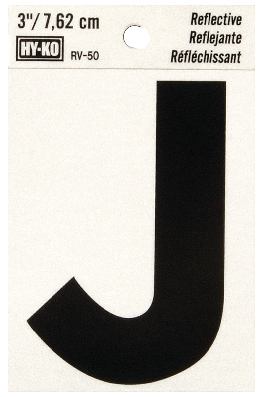 HY-KO RV-50/J Reflective Letter, Character: J, 3 in H Character, Black Character, Silver Background,