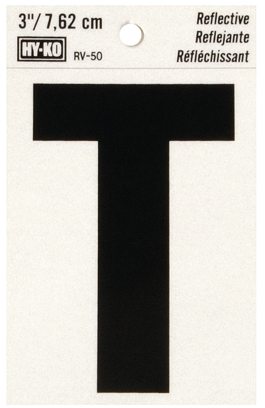 HY-KO RV-50/T Reflective Letter, Character: T, 3 in H Character, Black Character, Silver Background,