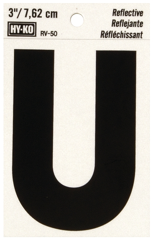 HY-KO RV-50/U Reflective Letter, Character: U, 3 in H Character, Black Character, Silver Background,