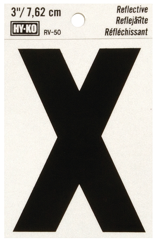 HY-KO RV-50/X Reflective Letter, Character: X, 3 in H Character, Black Character, Silver Background,