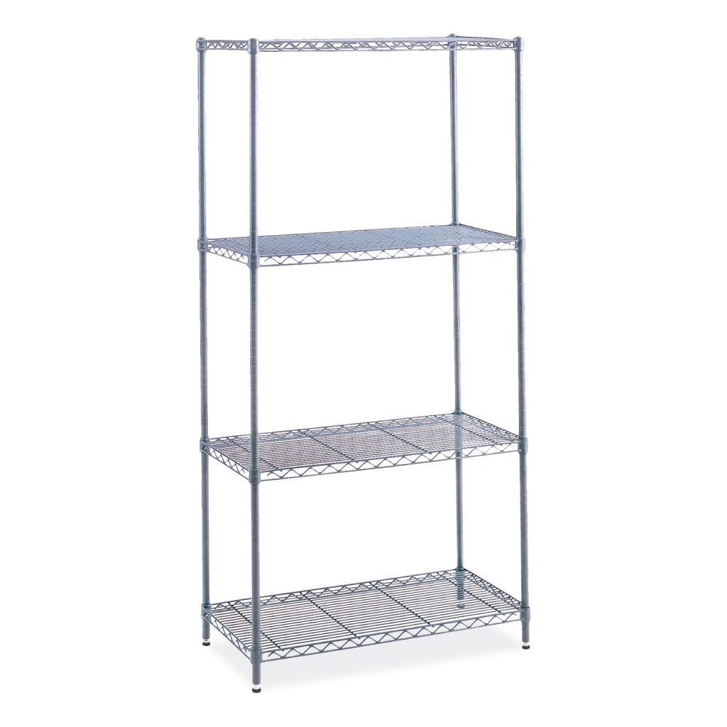 Welded wire construction for strength and durability. Open wire design permits air circulation and prevents dust accumulation. Shelves adjust in 1″ increments, and the unit assembles in minutes without tools. Attractive, durable powder coat finish. Series Name: Safco Industrial Wire Shelving; Shelf Count: 4; Shelf Depth: 24″; Shelf Capacity (Weight): 1,000 lbs.